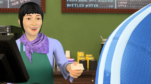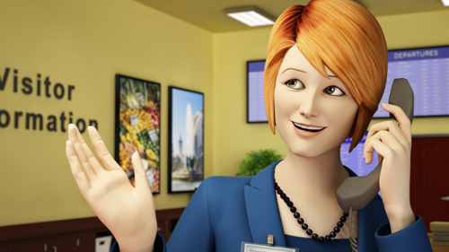 英語教材の挿絵風な素材です。 一般的なアプローチだと、クリック率は上がりません。 そこで、英会話に対する潜在的な興味・関心を掘り起こす作戦に出ました。 ブロンドお姉さんの腕を改変して、ツッコミ役を担当してもらいました。